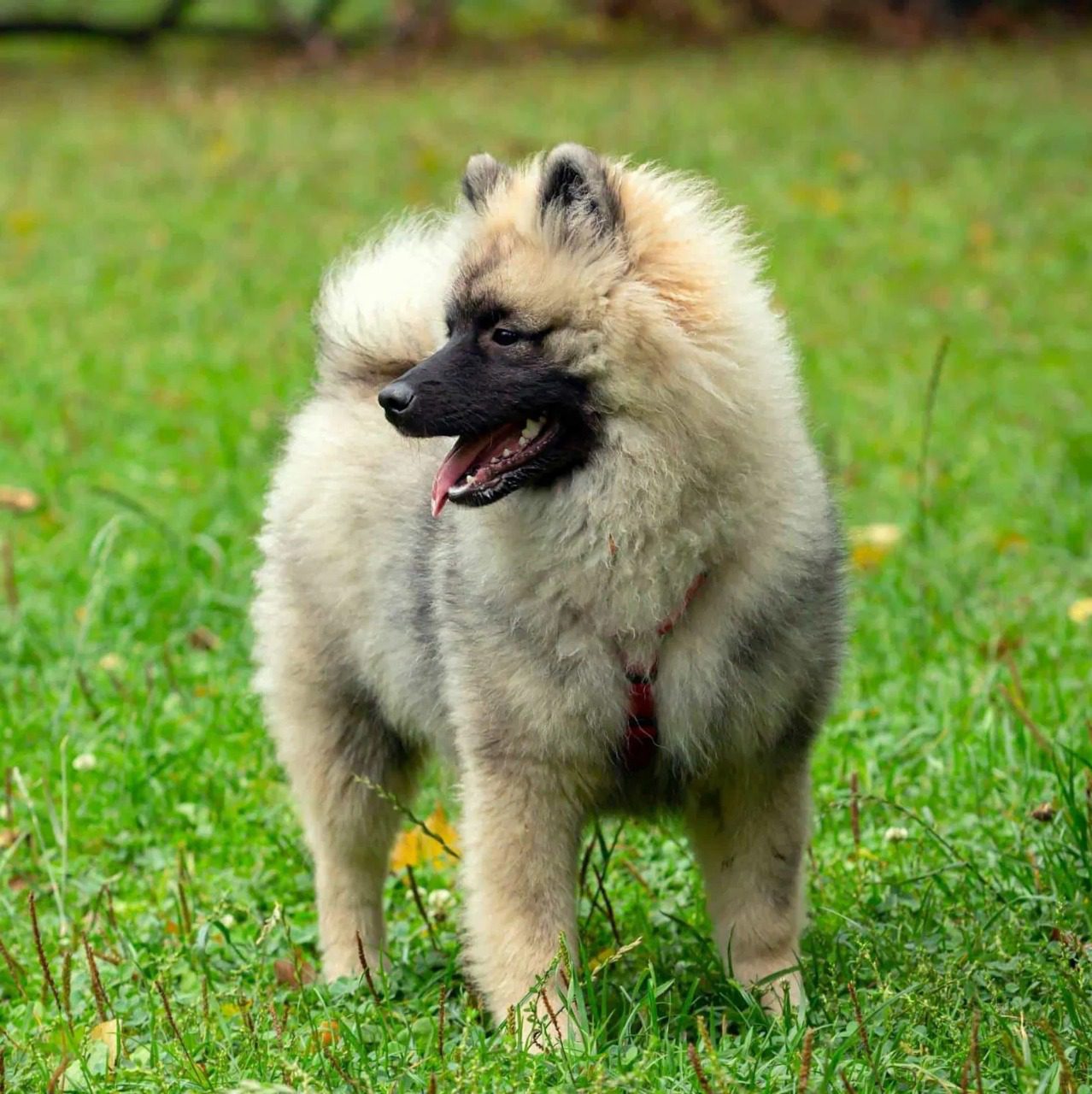 The Keeshond is a friendly, affectionate, and lively breed with a striking mane around its neck. Known for its “spectacles” markings around the eyes, they are social, loving, and make great family pets.